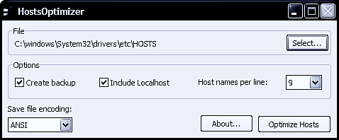 HostsOptimizer is a free, portable tool that optimizes the Windows hosts file by rearranging the content to a maximum of 9 host names in a single line, removing comments and Disabled entries and Remove duplicate.